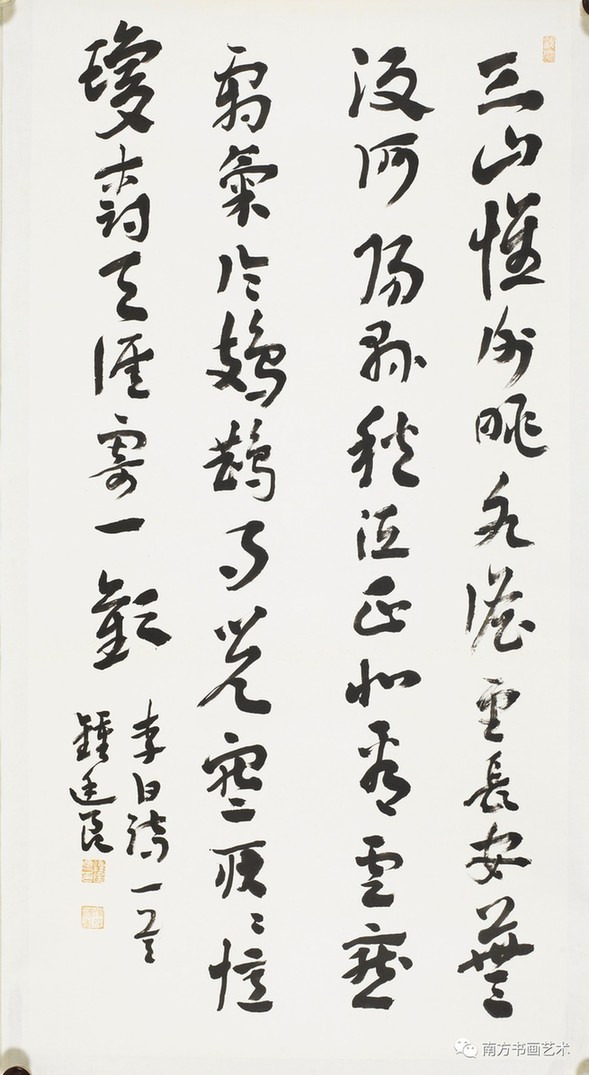 鐘廷良少年時期在外公的指導下學習傳統(tǒng)文化,同時學習書法和書畫鑒賞。其時碑帖讀本稀缺,便從鄉(xiāng)賢處請教受益。及至青年時期(上世紀九十年代),開始接觸晉、唐、宋、元、明、清名帖,方始涉獵顏真卿、米芾、黃庭堅及清人王鐸。然未得法,故面目凌亂。及至新世紀千禧年后(二000年后)才逐漸探求《月儀章》、《急就章》等章草法帖,再參近現代沈曾植、王蘧常等家藏作品后,結字漸有起色。其間,也苦臨《散氏盤》《石鼓文》《城隍廟記》《袁安碑》等篆籀名刻。