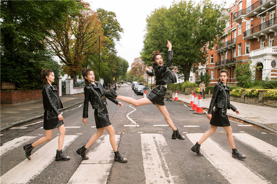 ??? 近日,金晨一組在倫敦的街拍照曝光。照片中,金晨置身于倫敦的艾比路,黑色皮衣搭配短裙大秀美腿,馬丁靴的搭配也更顯前衛(wèi)時髦。與以往或優(yōu)雅或復古的街拍不同,金晨此次歡脫地模仿起披頭士過馬路的經(jīng)典畫面,一人cos披頭士四位成員,可謂創(chuàng)意十足。而她時不時做出旋轉跳躍的高難度的動作,令不少網(wǎng)友紛紛表示:為金晨瘋狂打call。