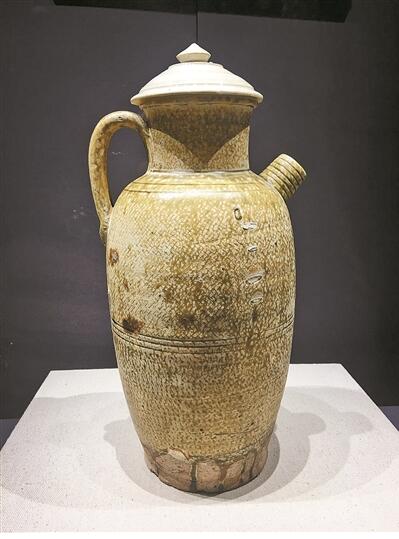 邢窯席紋黃釉大執(zhí)壺。展品均為難得一見(jiàn)的文物珍品