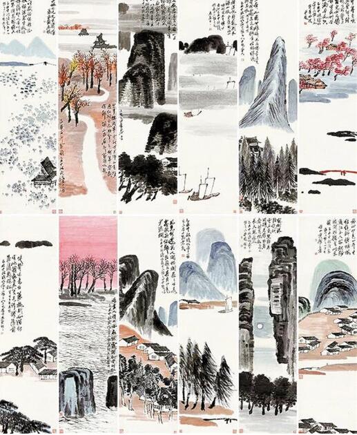 齊白石《山水十二條屏》創(chuàng)作于1925年,那一年齊白石62歲,正是他老年改變繪畫(huà)風(fēng)格的第四個(gè)年頭。他拋卻此前中國(guó)山水的程式,進(jìn)入“一洗凡塵萬(wàn)事空”的真山真水創(chuàng)作境界,這件作品幾乎囊括了齊白石所有山水畫(huà)題材,而且每屏上均題有自作詩(shī),鈐蓋齊白石常用印章,“詩(shī)書(shū)畫(huà)印”四絕俱全,堪稱(chēng)其對(duì)山水創(chuàng)作升華后的集大成者?!?記者張 漫子)