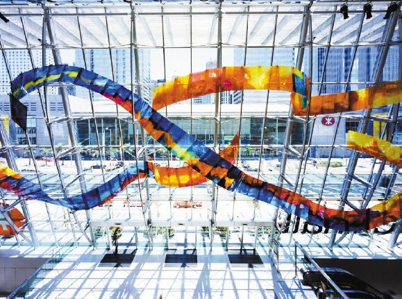 ▲盛姍姍在香港國際金融中心二期(IFC)的作品《舞動的絲帶》。 (受訪者供圖)