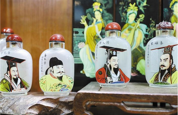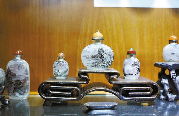 據(jù)楊藝介紹,明末清初,鼻煙作為貢品開始傳入我國,這些進(jìn)貢的鼻煙用玻璃瓶盛裝,以防止其味道散失,并以瓶的大小標(biāo)示鼻煙計(jì)量。王士禎在《晉祖筆記》中記載:“鼻煙以玻璃為瓶貯之。瓶之形象種種不一,顏色具紅黃紫白黑綠諸色,白如水晶,紅如火齊,極可愛玩,以象齒為匙,就象鼻之,遠(yuǎn)納于瓶。”它的突出貢獻(xiàn)就在于,把紙上畫和寫的藝術(shù),經(jīng)過工具、操作等多方面的革新,改在為玻璃或水晶煙壺內(nèi)壁反面上作畫,其難、其奇,真可謂巧奪天工。內(nèi)畫煙壺的創(chuàng)作在光緒年間達(dá)到鼎盛。收藏界認(rèn)為它集中國工藝美術(shù)之大成的袖珍藝術(shù),是詩書畫并茂的藝術(shù)精品。