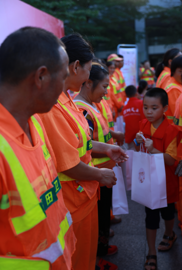 活動(dòng)現(xiàn)場(chǎng),深圳市關(guān)愛辦、中國(guó)銀行深圳分行代表主辦方還向現(xiàn)場(chǎng)30余位環(huán)衛(wèi)工人贈(zèng)送了早餐、餐券及工作馬甲等物資。