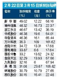 股市中有“三板成妖”一說。截至周四收盤,滬深兩市過去10個交易日,漲幅超過30%的股票有34只;過去5個交易日,漲幅超過30%的股票有15只。以上這些股票里,有一些連續(xù)上漲3個漲停以上,已經(jīng)“成妖”。那么,這些妖股有沒有一些共同點(diǎn)呢? 除少數(shù)次新股如萬興科技之外,絕大多數(shù)這類股票都經(jīng)過了一兩年下跌,股價處于低位,因這樣那樣原因得到資金關(guān)注而強(qiáng)力反彈。比如神州信息、浙江東日、中成股份、岳陽興長、國電南自、國投中魯、西儀股份等。