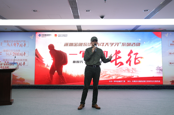 7月13日上午,由深圳金融團工委主辦、建設(shè)銀行深圳市分行團委承辦的深圳金融系統(tǒng)“青年大學習”主題團日活動在建設(shè)銀行會議室隆重召開?;顒友堉麛z影家、紀錄片導(dǎo)演左力老師為大家分享“一個人的長征”主題講座。深圳金融團工委劉鵬書記出席活動并致辭,50余家機構(gòu)共150多名深圳金融青年參加了這次活動。
