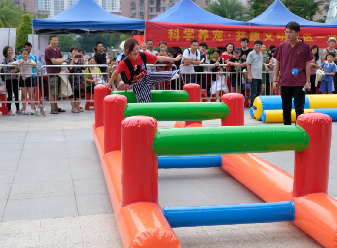 記者在現(xiàn)場看到,運動會由汪星人“翻山越嶺”障礙物通關和喵星人“萌主起駕”鏟屎官闖關兩個項目組成,比賽競爭激烈趣味無窮,吸引了社區(qū)鄰里參與互動,活動氣氛歡樂無邊。此次活動既為社區(qū)帶來一場別開生面的趣味活動,又為社區(qū)居民宣傳了科學養(yǎng)寵的相關知識,倡導文明養(yǎng)寵和諧社區(qū)的正能量。活動現(xiàn)場處處歡聲笑語,社區(qū)居民與小寵物們共享歡樂。