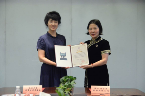南京大學(xué)發(fā)展委員會主任張曉東向詩碧曼集團董事長朱建霞頒發(fā)感謝狀