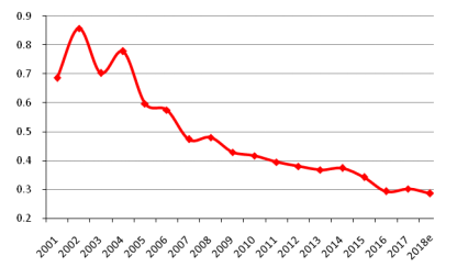 圖1我國(guó)貧富差距指數(shù)