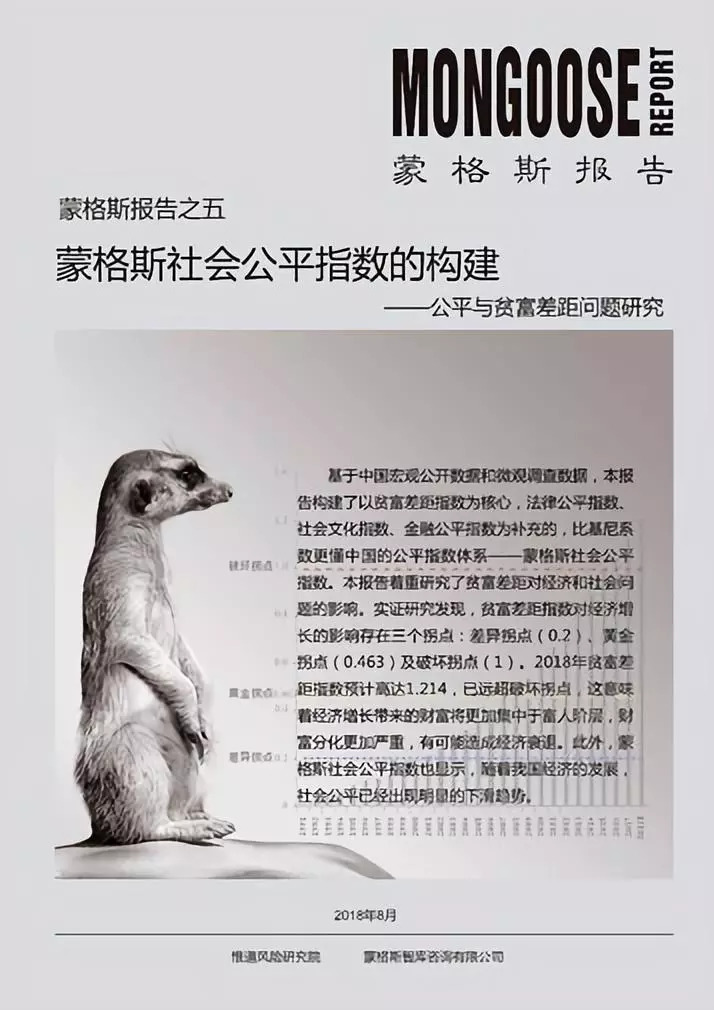 2017年7月,惟道風(fēng)險(xiǎn)研究院攜手多位來(lái)自學(xué)術(shù)界、企業(yè)界的專(zhuān)家學(xué)者,在朱小黃博士及中央財(cái)經(jīng)大學(xué)商學(xué)院副院長(zhǎng)林嵩教授的主持下,成立了蒙格斯社會(huì)公平指數(shù)研究課題組,歷時(shí)一年精耕細(xì)作,構(gòu)建了以貧富差距為核心,綜合考量法律、社會(huì)文化及金融等影響公平維度的蒙格斯社會(huì)公平指數(shù),并開(kāi)發(fā)了貧富差距與經(jīng)濟(jì)增長(zhǎng)的拐點(diǎn)體系。