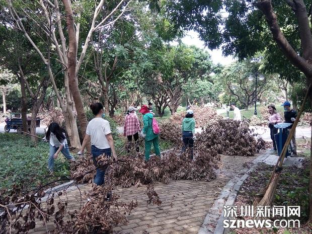 9月22日,臺風(fēng)過后小長假的第一天,深圳農(nóng)村商業(yè)銀行積極響應(yīng)深圳市城管局和人大代表“人人行動,一起清潔美麗家園”的倡議,在全行發(fā)起了“愛心清理中心公園,還深圳一片干凈祥和”的志愿活動,全行70多名員工和家屬自發(fā)組成義工隊,利用中秋小假期來到深圳市中心公園,積極參與搬運殘枝斷木,清潔落葉垃圾的活動。在清理公園路障過程中,深圳農(nóng)商行員工分工明確,男士負責(zé)倒塌樹枝、樹樁的疏通與清理,女士則主要負責(zé)零散枝丫、落葉的清掃。而當(dāng)清理至公園受災(zāi)最嚴重區(qū)域時,深圳農(nóng)商行義工隊成員齊上陣,兩手并用,或是用力拖拽巨大的倒塌樹枝,或是通力協(xié)作抬抱沉重的實木樁,來來回回不斷將攔路樹枝收拾整齊歸攏到路邊,以方便公園管理處人員后續(xù)處理。此次清理工作持續(xù)了約3小時,基本恢復(fù)了公園中心區(qū)綠道的通暢與整潔。路過的行人得知他們是義務(wù)進行清理時,無不駐足稱贊,而參與此次活動的所有深圳農(nóng)商行人也同樣為自己感到驕傲。