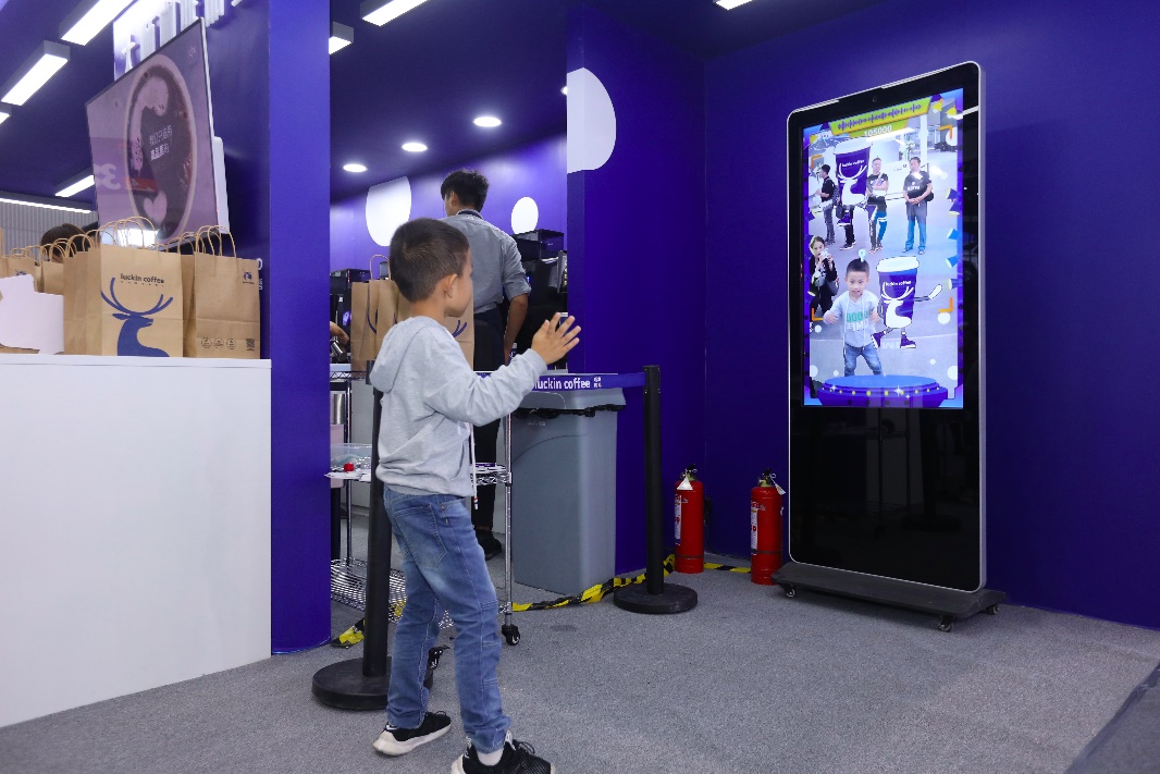 瑞幸咖啡快閃店位于琶洲會(huì)館A區(qū)3.2館2C05,在提供咖啡與飲品服務(wù)的同時(shí),現(xiàn)場(chǎng)還準(zhǔn)備有豐富的互動(dòng)娛樂(lè)活動(dòng),觀眾可以在互動(dòng)尬舞機(jī)前比試一番,掃碼后自動(dòng)生成短視頻,領(lǐng)取后可自行上傳到網(wǎng)上,然后領(lǐng)取瑞幸咖啡為本次廣州車(chē)展準(zhǔn)備的5.8折飲品優(yōu)惠券。