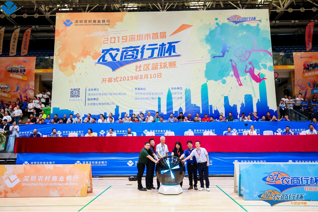 開(kāi)幕現(xiàn)場(chǎng),深圳市羅湖區(qū)政府副區(qū)長(zhǎng)莊睿寧,深圳農(nóng)村商業(yè)銀行董事長(zhǎng)李光安、行長(zhǎng)袁捷,深圳市文化廣電旅游體育局群眾體育處處長(zhǎng)解汝成等領(lǐng)導(dǎo)嘉賓共同開(kāi)啟激光啟動(dòng)球,宣布2019深圳市首屆“農(nóng)商行杯”社區(qū)籃球賽決賽賽程正式啟動(dòng),現(xiàn)場(chǎng)400多名社區(qū)籃球隊(duì)員,近千名觀眾共同見(jiàn)證。