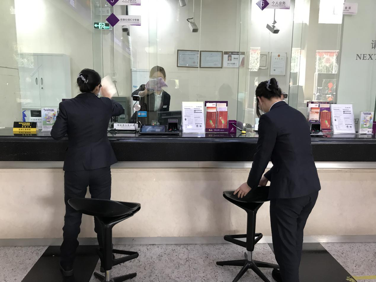 在此期間,為降低疫情傳播風險,網(wǎng)點員工每天堅持提前到崗,除自身佩戴口罩外,還用消毒液擦拭柜臺內(nèi)外及大堂桌椅和機器,為來行客戶提供安全舒適的環(huán)境。(通訊員 樓蓉 李昕)