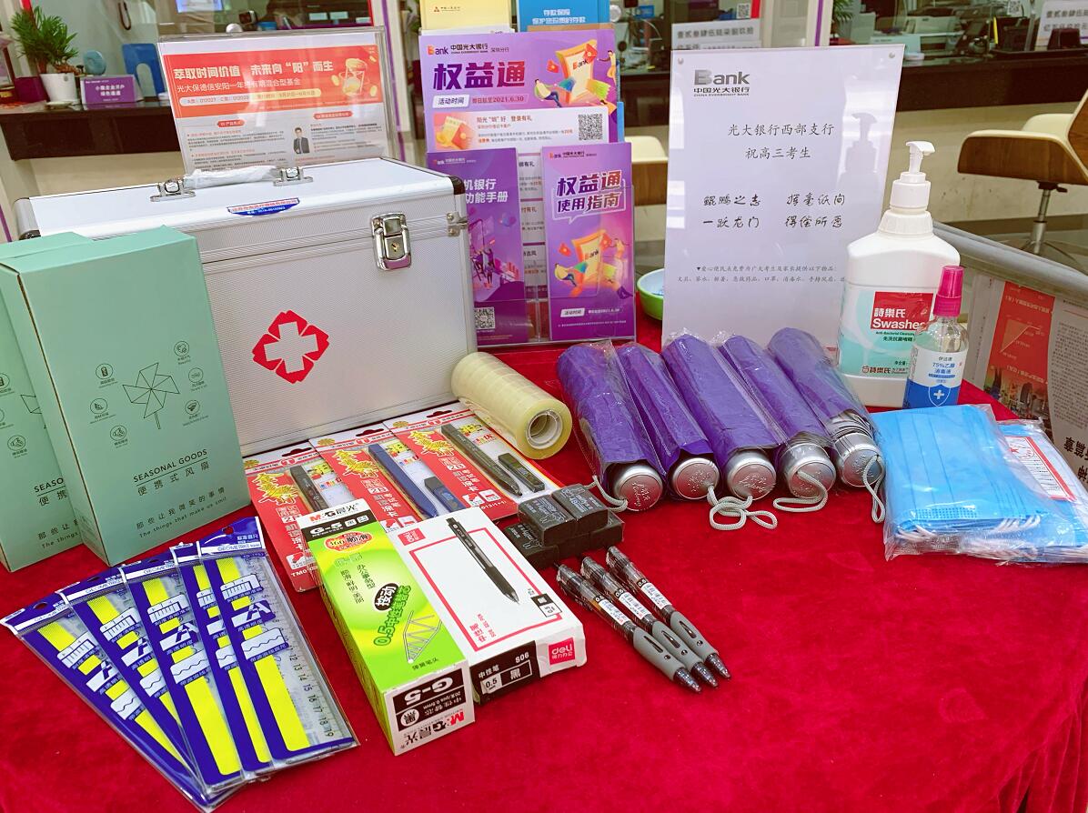 6月7日-8日期間,光大銀行深圳分行的一些支行網(wǎng)點(diǎn),出現(xiàn)了暖心的一幕——高考便民服務(wù)驛站免費(fèi)為附近考點(diǎn)的廣大考生與家長提供部分文具、口罩、解暑藥品、茶水、便攜風(fēng)扇、遮陽傘等便民物品。不少送考家長等候期間在便民驛站停留并感受到細(xì)心的服務(wù),連連稱贊銀行的服務(wù)人性化、貼心。