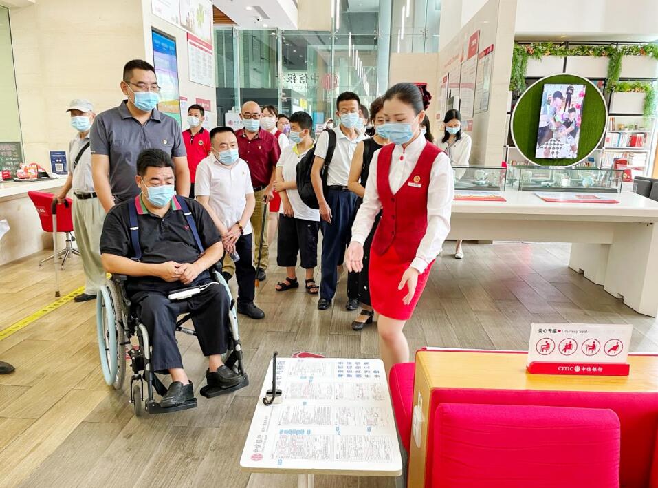 交流座談會(huì)結(jié)束后,全體黨員干部來到中信銀行深圳城市廣場旗艦支行現(xiàn)場體驗(yàn)網(wǎng)點(diǎn)無障礙設(shè)施和服務(wù),支部黨員與障礙人士現(xiàn)場溝通交流,為改進(jìn)無障礙服務(wù)提出有益建議。