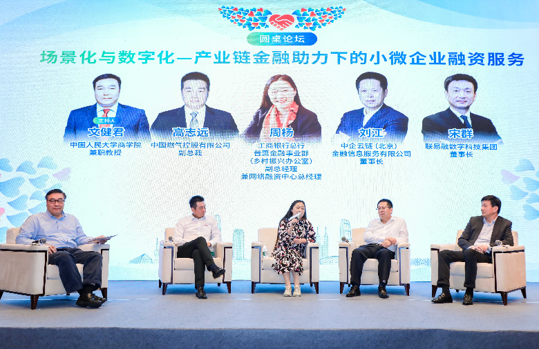 在論壇對(duì)話環(huán)節(jié),工行總行普惠金融事業(yè)部副總經(jīng)理兼網(wǎng)絡(luò)融資中心總經(jīng)理周楊、核心企業(yè)代表中國(guó)燃?xì)饪毓捎邢薰靖笨偛酶咧具h(yuǎn)、供應(yīng)鏈服務(wù)機(jī)構(gòu)代表中企云鏈(北京)金融信息服務(wù)有限公司董事長(zhǎng)劉江和聯(lián)易融數(shù)字科技集團(tuán)董事長(zhǎng)宋群共同探討了如何以融合和創(chuàng)新方式,通過產(chǎn)業(yè)鏈金融助力小微企業(yè)融資服務(wù),互相交換在產(chǎn)業(yè)鏈金融發(fā)展方面的經(jīng)驗(yàn)和智慧。
