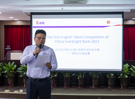 據(jù)了解,自總行下發(fā)《關(guān)于舉辦2021年中國光大銀行首屆外語風(fēng)采大賽的通知》后,光大銀行深圳分行黨委高度重視,由交易銀行部聯(lián)合工會牽頭主辦,分行公司業(yè)務(wù)管理部、金融同業(yè)部、普惠金融部、機(jī)構(gòu)業(yè)務(wù)部等協(xié)同合作。分行活動通知發(fā)布后,吸引眾多分行員工前來報名,最終確定了13不同崗位的優(yōu)秀選手入圍參加。