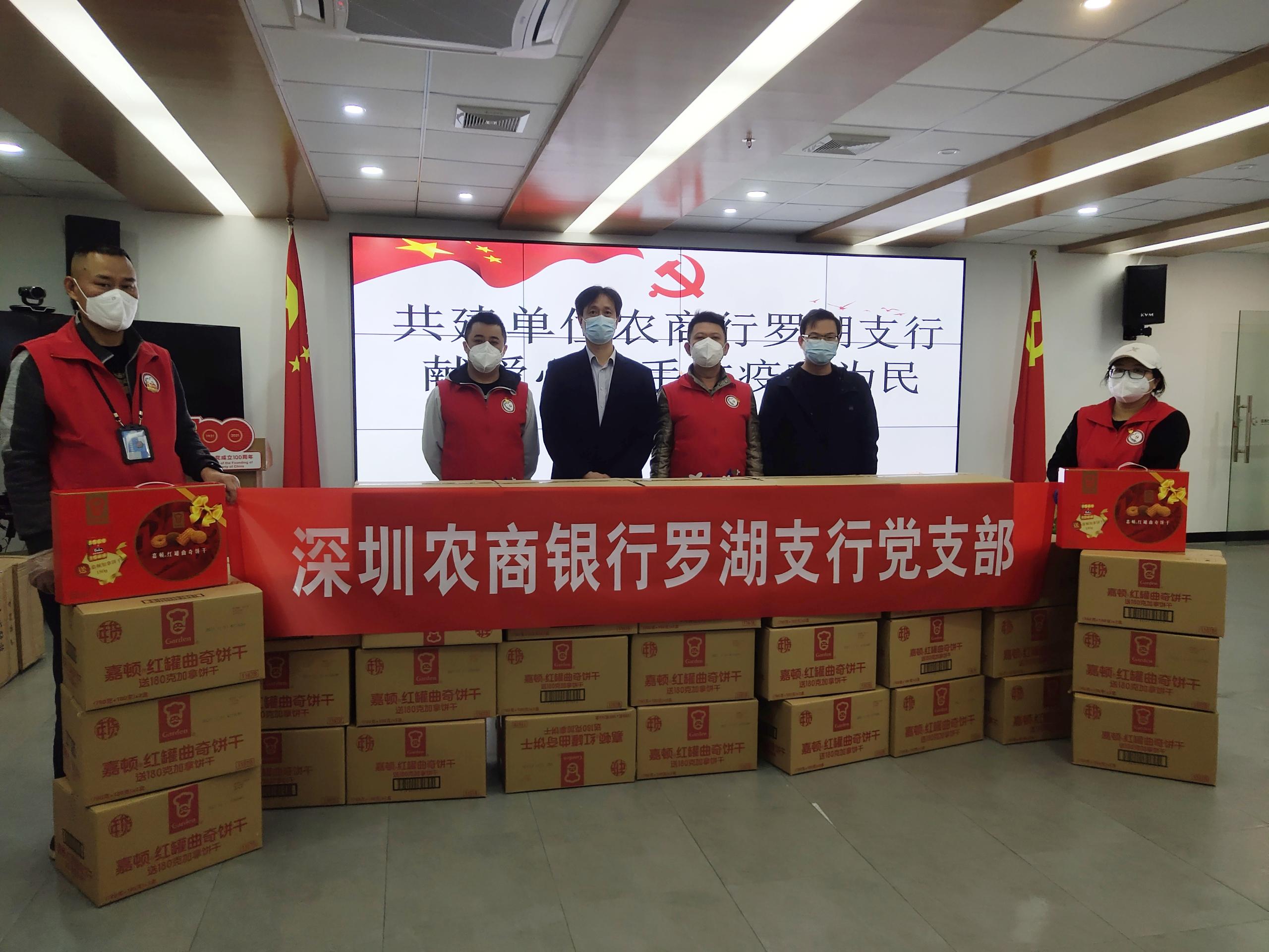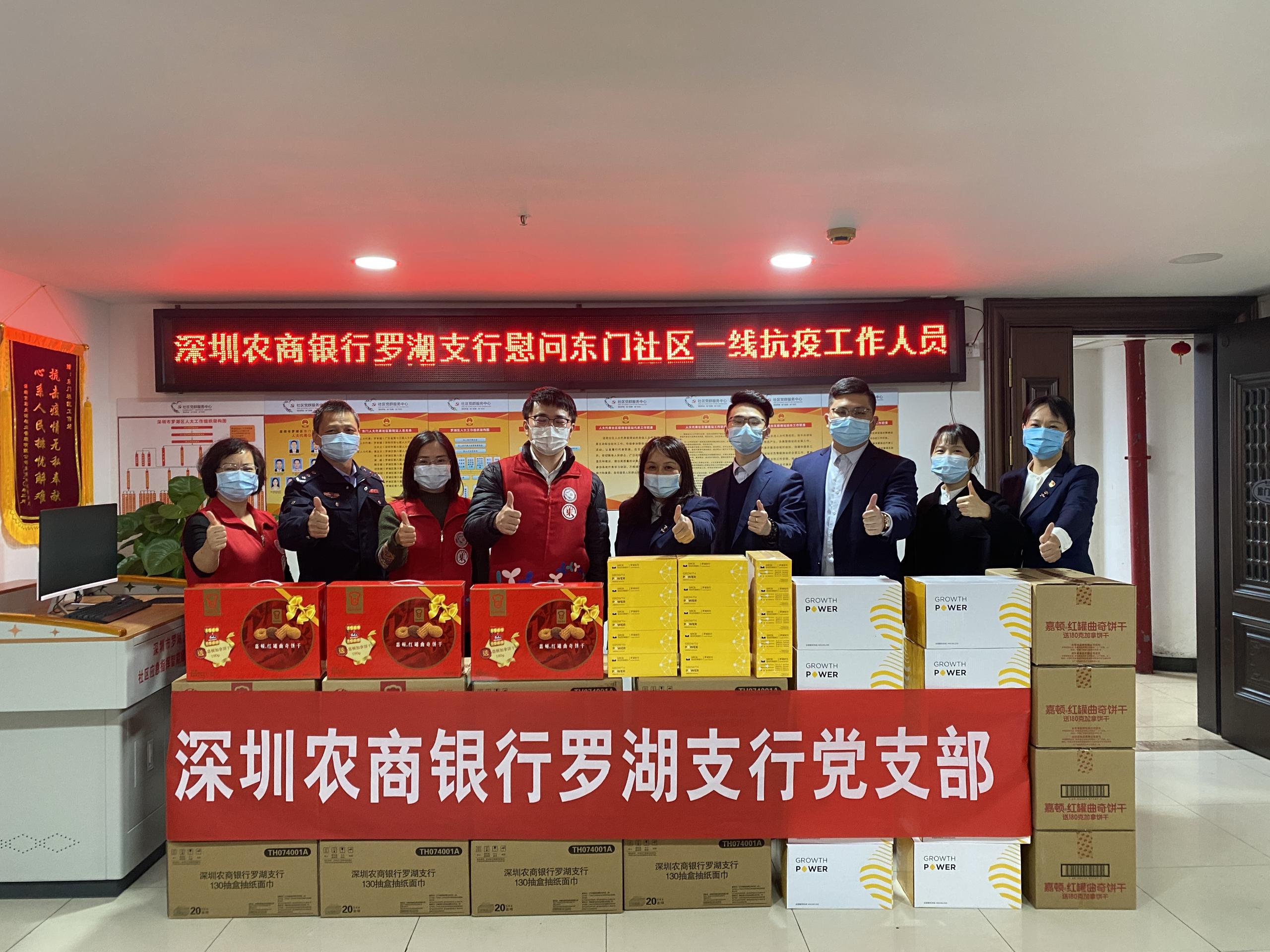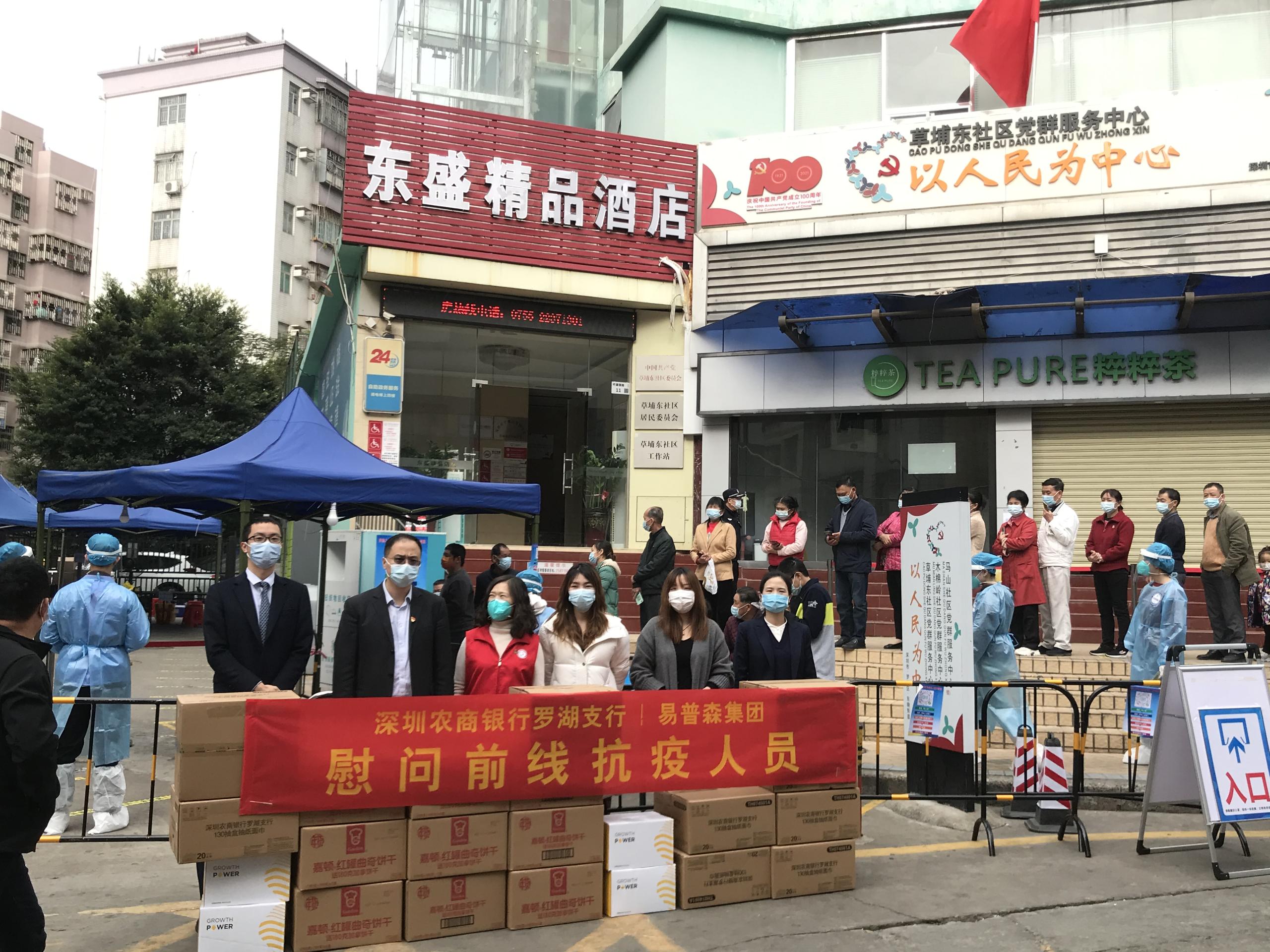 草埔東社區(qū)工作站張廣華書張書記表示:非常感謝前來慰問的單位和企業(yè),心暖暖的,知道有很多人在關(guān)心他們,累點苦點沒什么。這也是深圳農(nóng)商銀行羅湖支行發(fā)起本次活動的初衷,希望物資不僅帶給抗疫人員體能上的補充,同時也讓他們感受到他們不是一個人在戰(zhàn)斗,大家一起協(xié)力,共同打贏深圳這場疫情防控阻擊戰(zhàn)。