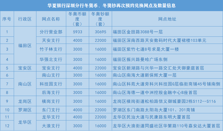 華夏銀行深圳分行共12家網(wǎng)點承辦冬奧紀念幣和紀念鈔發(fā)行工作,市民可憑有效身份證件通過以下三種線上渠道預約。
