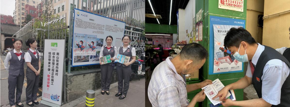 為提升人民群眾對人民幣的鑒偽能力,降低城中村地區(qū)假幣危害,維護城中村地區(qū)穩(wěn)定安寧和群眾切身利益,8月16日至8月18日,廣發(fā)銀行深圳分行組織30余家支行走進深圳市向西村、向南村、崗廈村、平湖村等24個城中村,向居民、務工人員、老年人、青少年等群體普及現(xiàn)行流通人民幣防偽特征和“一看二摸三聽四測”的真假幣辨識方法?!耙豢础笔侵缚雌泵嬲孀髠?cè)空白處,迎光透視,真鈔水印清晰,有立體感;“二摸”是指摸票面人像、盲文點、中國人民銀行行名等處,真鈔有明顯凹凸感;“三聽”是指用力抖動鈔票或手指輕彈票面,真鈔能聽到清脆響亮聲音;“四測”是指可以用簡易工具進行熒光檢測,假幣在熒光下整張發(fā)白發(fā)亮。