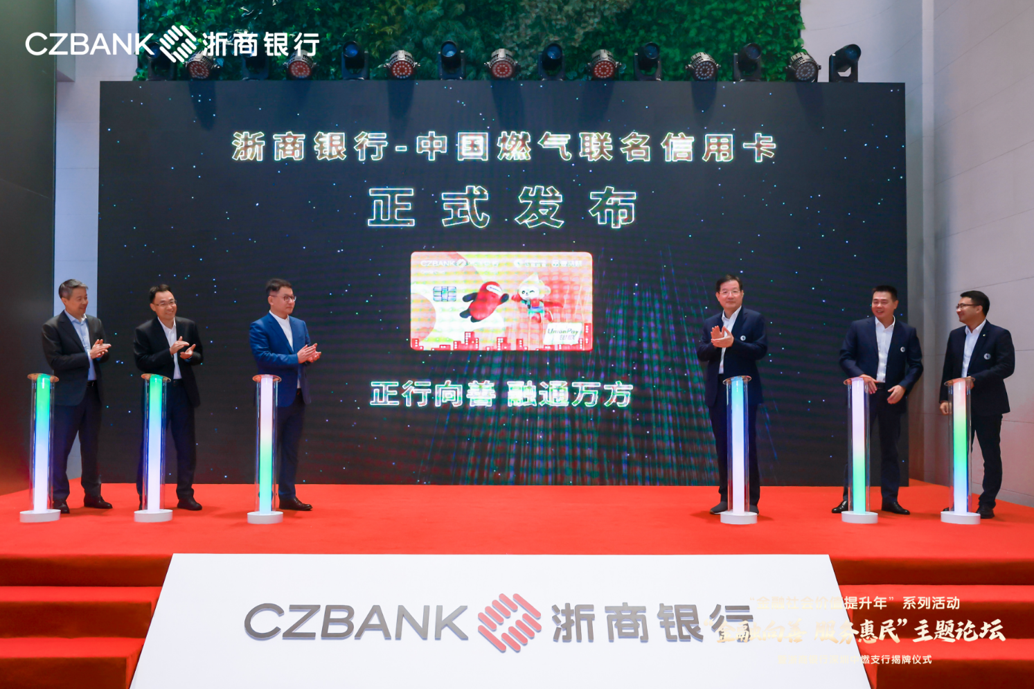 浙商銀行一直堅定看好深圳的發(fā)展,積極融入深圳經濟社會發(fā)展大局。陸建強董事長與劉明輝主席共同為深圳中燃支行揭牌,標志著浙商銀行在深圳的第16家機構正式投入運營。這也是浙商銀行系統(tǒng)內第一家以服務對象命名的支行?;顒蝇F(xiàn)場還發(fā)布了“浙商銀行-中國燃氣”聯(lián)名信用卡。北京高占祥文化藝術基金會還授予浙商銀行深圳分行慈善公益合作機構稱號。