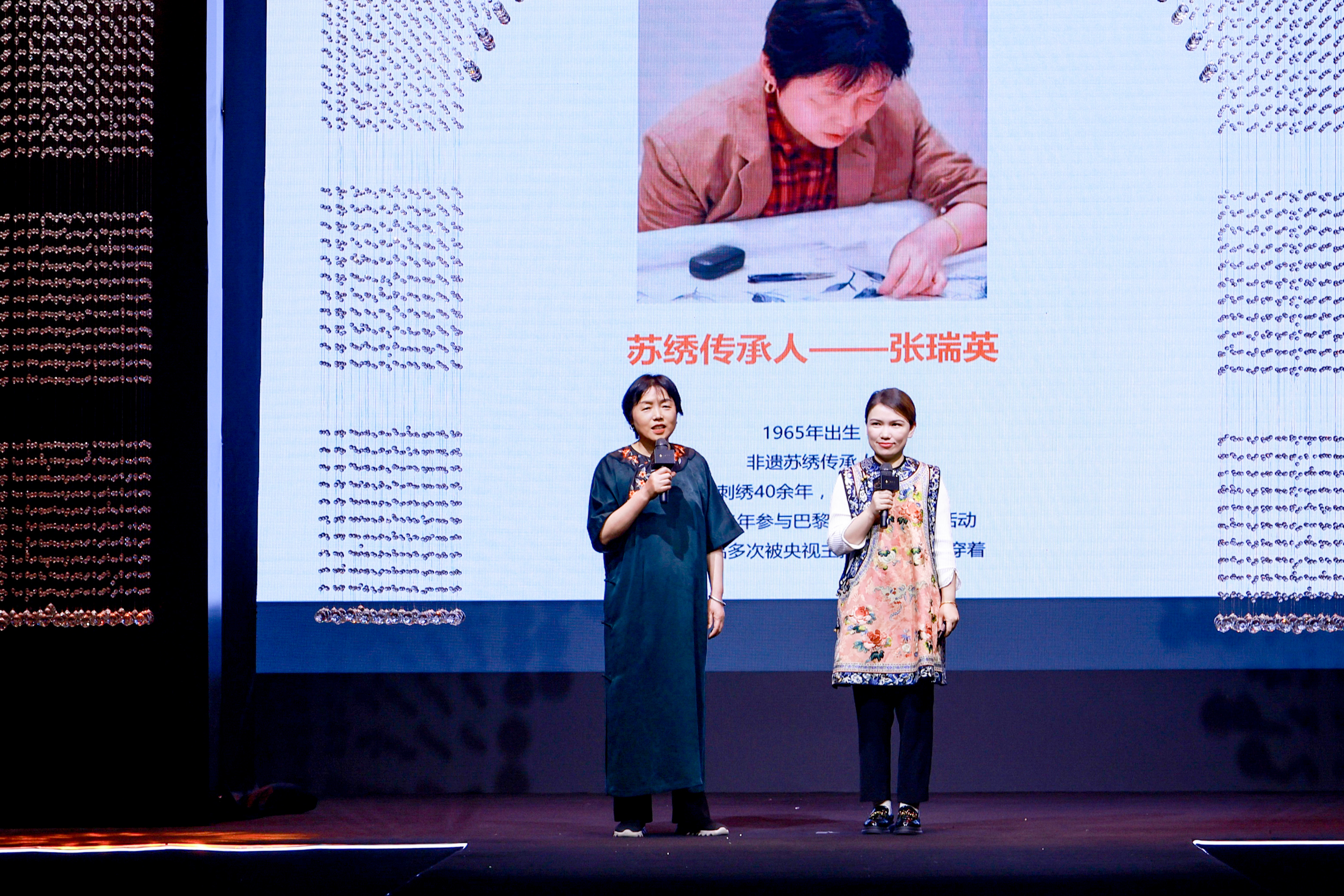蘇繡傳人張瑞英現(xiàn)場進行了蘇繡文化講解,讓非遺傳承技藝再上舞臺,將非遺元素運用在當代的生活方式中,展現(xiàn)非遺文化非同尋常的光芒之處,傳播非遺重要傳承內核,用服裝承載國風文化,傳遞中國風采。當以蘇繡手藝復刻的百年服飾再現(xiàn)于秀場,傳統(tǒng)技藝真實演繹“經(jīng)典永流傳”,彰顯了傳承中國文化的手工技藝“奢侈品”含義。