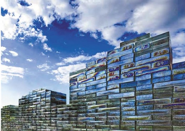 最具代表性的是盛姍姍受邀參加2009年第53屆威尼斯雙年展的作品《開放的長城》,它長約22米,由2200多塊玻璃磚組成,對應中國長城存世的2200多年歷史,通身透出七彩光芒;《文字演變》描述了象形文字從原始的狀態(tài)到當代文字的演變;《舞動的絲帶》則以中國當代的絲帶舞為基礎,形成色彩與絲帶交織的造型,而這種造型代表了泛文化在公共建筑內(nèi)的交融。此外,《生生不息的竹子》《華夏青銅時代系列》《算盤》等作品,都可以找到鮮明的中國傳統(tǒng)文化元素。