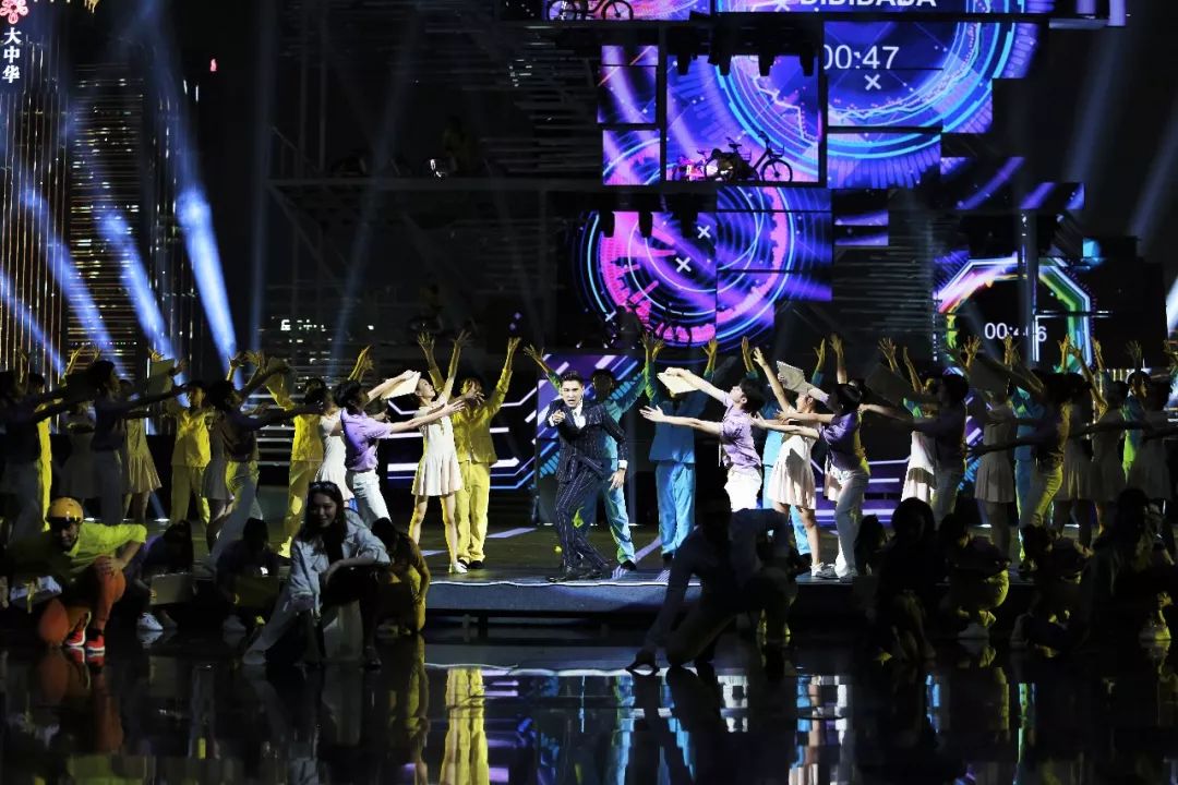 在本場(chǎng)晚會(huì)上,為了響應(yīng)“追夢(mèng)”主題,李盾聯(lián)合百 老匯頂級(jí)音樂劇導(dǎo)演卓依·馬可尼利、國(guó)際著名作曲家阿鯤,著名作詞家梁芒為晚會(huì)創(chuàng)作了一段音樂劇形式的節(jié)目《嘀嘀嗒嗒》。作為節(jié)目的重心,主創(chuàng)團(tuán)隊(duì)在劇中融入了原創(chuàng)音樂劇《深南大道》的主題曲《新的一天》選段。內(nèi)容以深圳每一個(gè)上班族的工作和生活作為出發(fā)點(diǎn),以音樂劇的形式設(shè)計(jì)了如秘書、創(chuàng)業(yè)者、設(shè)計(jì)師、程序員、義工和銷售等等不同的角色,年輕的演員、動(dòng)聽的旋律、跌宕的劇情、新穎的節(jié)奏,點(diǎn)燃了現(xiàn)場(chǎng)觀眾的熱情。精彩的表演配合晚會(huì)場(chǎng)地絢爛激情的燈光秀,以及舞臺(tái)中心十多米高被命名為“追夢(mèng)人”的LED裝置,不時(shí)更換相應(yīng)的場(chǎng)景多媒體,整體形成如夢(mèng)幻般的光影效果。