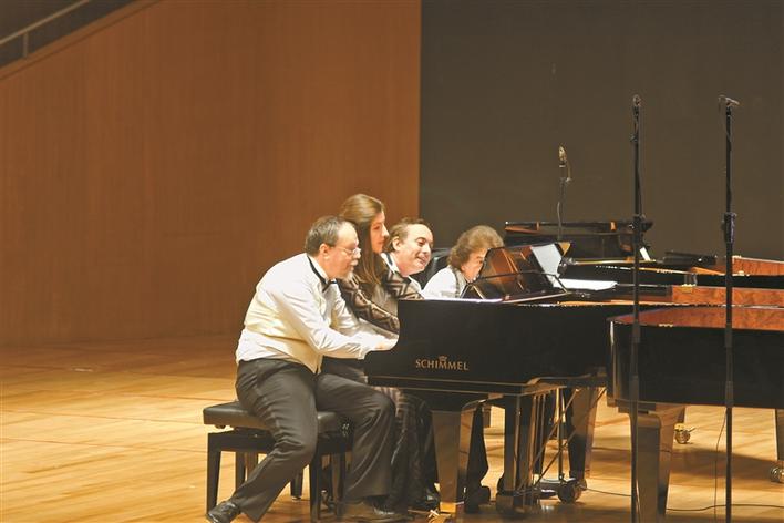 四位外國鋼琴家在盡情演奏《加洛普進行曲》。劉元舉 攝