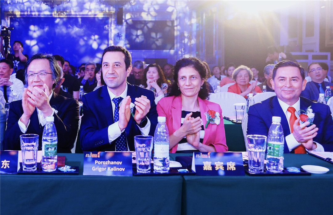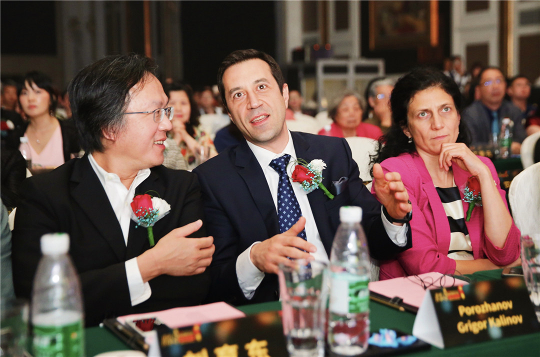 △保加利亞駐中國(guó)大使Porozhanov Grigor Kalinov與中俄友好大使、俄羅斯著名影星喜蓮娜為保加利亞DA Architects公司設(shè)計(jì)師頒發(fā)“最佳商業(yè)空間設(shè)計(jì)獎(jiǎng)”