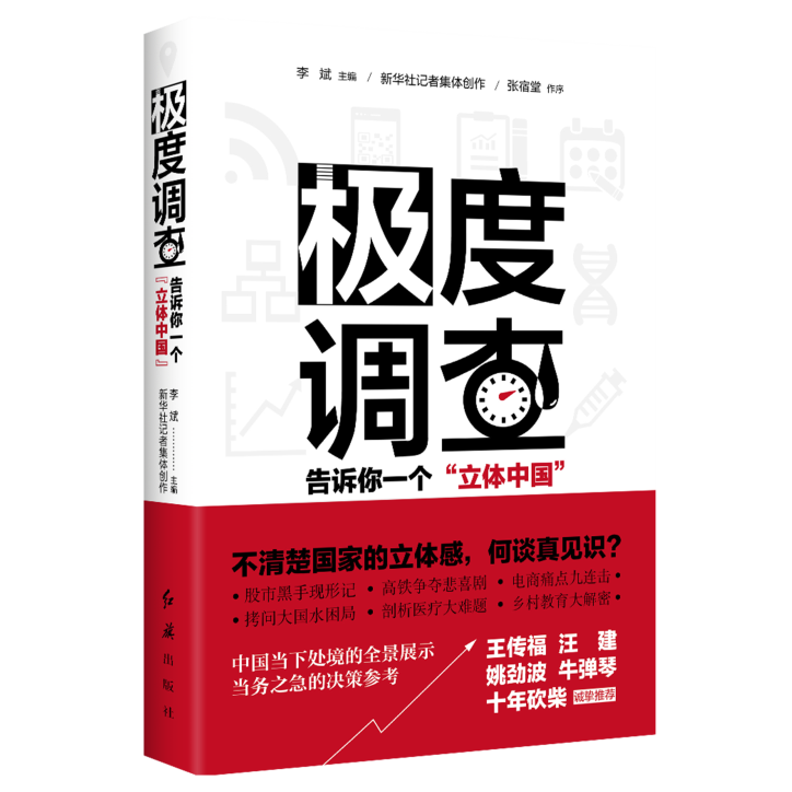 “他山之石,可以攻玉?!秉h員干部除了直接調(diào)研,還要善于間接調(diào)查,研讀科研機(jī)構(gòu)和媒體的調(diào)研報(bào)告,通過專業(yè)人士的視角,了解國(guó)情。 《極度調(diào)查:告訴你一個(gè)“立體中國(guó)”》,就是一本記錄時(shí)代變遷的調(diào)研力作。新華社北京分社副社長(zhǎng)、總編輯李斌者歷時(shí)三年,深入中國(guó)各地實(shí)施一系列重大調(diào)研,直擊民生痛點(diǎn)與焦點(diǎn),全方位呈現(xiàn)了復(fù)雜多樣的中國(guó)社會(huì)現(xiàn)實(shí)。20余萬字的《極度調(diào)查》,來自繁華都市,來自風(fēng)云行業(yè),更來自深山峽谷、偏遠(yuǎn)山村,股市、高鐵、電商、生態(tài)、教育、貧困、健康等諸多方面均有涉及,傳達(dá)出了最一線、富有思想沖擊力的聲音。讀此書,全方位、多維度了解中國(guó)國(guó)情。