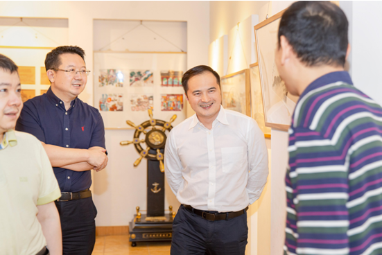 黃向真校長帶領(lǐng)圍棋大師參觀了學(xué)校,見證了校園充滿了濃郁的文化氛圍,學(xué)校一樓展示出清風(fēng)明月師生書畫聯(lián)展和書吧文化,二樓設(shè)有圍棋大講堂,學(xué)生們可以在寬敞舒適的環(huán)境里下棋。圍棋大師感嘆:我們小時侯學(xué)棋都沒有這么優(yōu)越的條件。