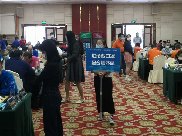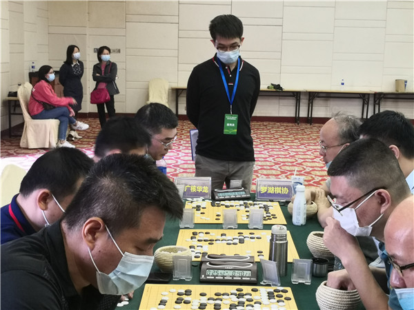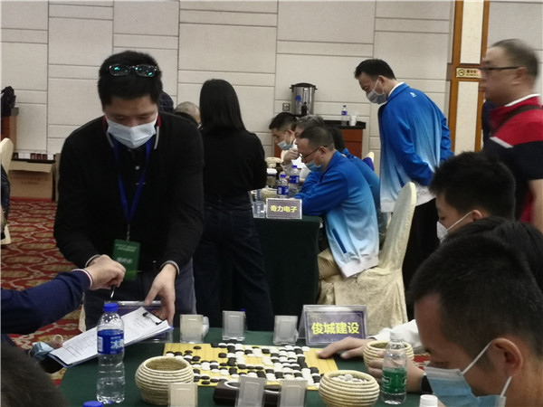 本屆聯(lián)賽在仍在抗疫的形勢下來之不易,賽事組委會非常珍惜,在防疫方面下了一番功夫。本次賽事執(zhí)行主任、著名國手梁偉棠九段介紹說:組委會在本次賽事《補充規(guī)定》中要求“本屆賽事因為疫情防控需要,全體人員必須佩戴口罩,掃碼入場,并全程不得摘下口罩;體溫過高者謝絕入場”。記者觀察到,現(xiàn)場的防疫落實還是比較到位的,一是在賽場入口布置了三人團隊,加強了掃碼、體溫檢測、提醒大家戴口罩,凡是入場的隊員、工作人員以及觀戰(zhàn)的圍棋愛好者,都必須進行體溫檢測,符合正常體溫的方可入場參賽;二是要求參賽隊員和工作人員戴口罩;三是加強賽場巡查,對沒有自覺戴口罩的在場人員進行勸導(dǎo)??傮w來說,賽場防疫秩序良好。