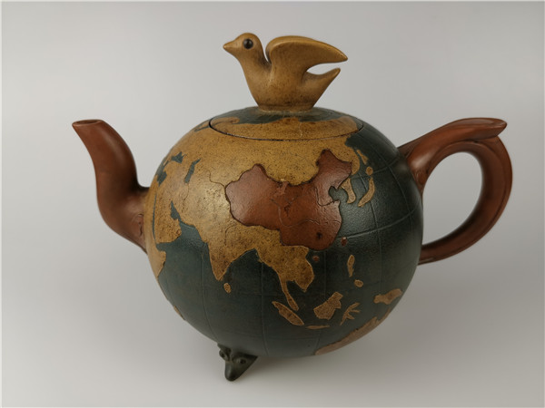 再說第二件,《世界和平壺》的回歸。2020年6月,唐朝霞老師的愛人韋強先生正在深圳商會開會。其間,一次會議結(jié)束后剛回到酒店時手機響起!一位美國的朋友電話給他告訴他一個天大的喜訊:在日本發(fā)現(xiàn)了唐朝霞爺爺唐鳳芝的傳奇作品“世界和平壺”。韋強介紹說,1943年,因為唐鳳芝是民國時的紫砂大師,民國政府委托唐鳳芝先生特制了“世界和平壺”,隨后,由宋美齡女士在赴美國演講時一起帶了過去,象征著世界和平之意!想不到時隔80年,竟然在日本出現(xiàn)了。韋強說,看到實物照片時,真的太激動了!此前,他們在家里只看到過爺爺設(shè)計的圖紙,從沒看到過實物,接到這意外訊息真的是驚喜萬分!真是難以入眠!通過一系列的協(xié)調(diào),日本的藏家愿意轉(zhuǎn)讓,讓激動的心更加興奮了,立即訂了機票,著手辦理“回歸事宜”。當他終于在海關(guān)拿到了這件作品,包裝非常完好,便緊緊的抱在胸前:飄泊海外80年的“思念”終于落定了,爺爺唐鳳芝的“世界和平壺”終于回家了。韋強說:當時的心情無法用言語形容!只覺得天空格外清新、陽光格外燦爛!