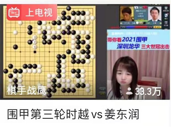 今日虎牙直播對深圳龍華隊(duì)的現(xiàn)場講解點(diǎn)評沖上了33.3萬人次的大關(guān),人氣可謂一路上升!職業(yè)女棋手戰(zhàn)鷹解說生動(dòng)有趣,棋迷們聽得也過癮。再有“龍哥”“申一冠”的迷粉,直播室熱鬧非凡!戰(zhàn)鷹是圍棋知名主播,作為深圳龍華隊(duì)網(wǎng)上直播合作人,為龍華隊(duì)的宣傳還真是帶來不小的效應(yīng)!明天繼續(xù)吧。