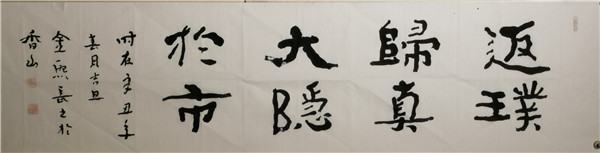 2011年隱居廣東中山,處江湖之遠(yuǎn)亦不忘躬耕,以書立德、以筆潤身,專注于佛法經(jīng)文、家學(xué)文化和百家家訓(xùn)書法的研究,并創(chuàng)辦五福書院,通過教授古琴、書法、四書誦讀等形式開班授課,以中國傳統(tǒng)文化踐行家學(xué)文化。歸隱而不忘憂國,金熙長先生自隱居以來,在珠海、中山、深圳、上海等地舉辦了多次《以書立德、以筆潤身——常福居士百家家訓(xùn)、百種心經(jīng)書法作品全國巡展》;2020年8月,金熙長先生的《方正字跡-金熙長標(biāo)題體》在方正字庫正式上線。
