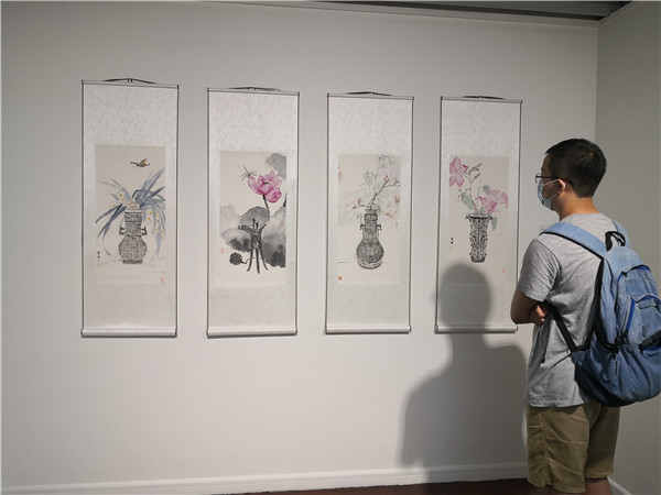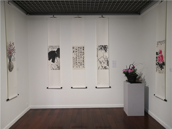 策展人莊程恒認(rèn)為,身處現(xiàn)代都市叢林之中,重新思考傳統(tǒng),非常有價(jià)值?!拔覀儗⑷粘P缘臅鴮懞屠L畫作為本次‘鵬滘雅會’的主題,融合花道和現(xiàn)代文創(chuàng),力圖構(gòu)建一個(gè)現(xiàn)代語境下的古典文化氛圍,呈現(xiàn)作為現(xiàn)代化都市深圳青年一代的藝術(shù)家如何以現(xiàn)代人的精神,詮釋古典藝術(shù)之美?!?/p>