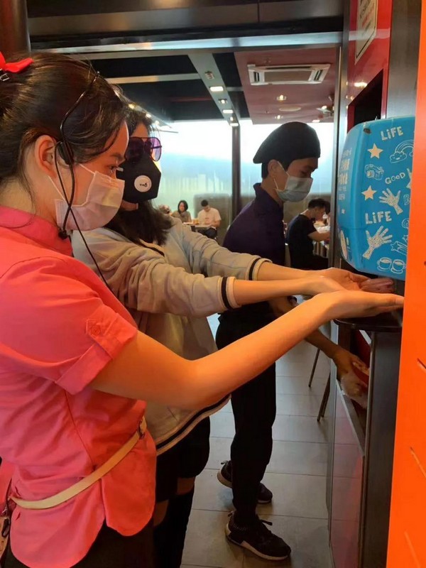 目前全國所有的麥當(dāng)勞餐廳啟動(dòng)上班員工測(cè)溫流程,并提高員工洗手消毒頻次,全國餐廳全員佩戴口罩。在餐廳為顧客提供免洗洗手液,對(duì)所有餐廳的通風(fēng)系統(tǒng)和顧客常接觸的設(shè)施,強(qiáng)化消毒并增加頻次,包括大門把手、自助點(diǎn)餐屏、樓梯扶手、柜臺(tái)臺(tái)面、取餐區(qū)、桌椅、餐盤、兒童椅、兒童樂園等。