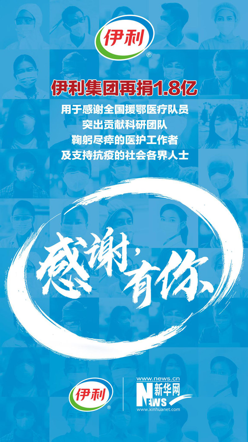 新華網(wǎng)北京3月26日電(胡可璐) 在這場戰(zhàn)“疫”中,無數(shù)平凡英雄帶給我們最多感動,他們以“逆行者”的無畏和擔當筑起疫情防控生命線,守護著人民,守護著國家。3月26日,伊利集團再捐1.8億,第一時間購買京東購物卡,贈送給全國所有援鄂醫(yī)療隊員,向他們提供全年營養(yǎng)支持;向鐘南山院士、李蘭娟院士、程京院士團隊捐贈1500萬元,感謝科研工作者做出的突出貢獻,共同推動健康領(lǐng)域的科研攻關(guān);第一時間購買京東購物卡,贈送給這次抗擊疫情中因公殉職醫(yī)護工作者的家屬,為他們提供連續(xù)十年的營養(yǎng)支持;同時也向奮戰(zhàn)在抗疫一線的社會各界人士提供營養(yǎng)保障。責任無界,大愛無疆,伊利累計捐贈額度將達2.8億,共迎抗疫勝利。