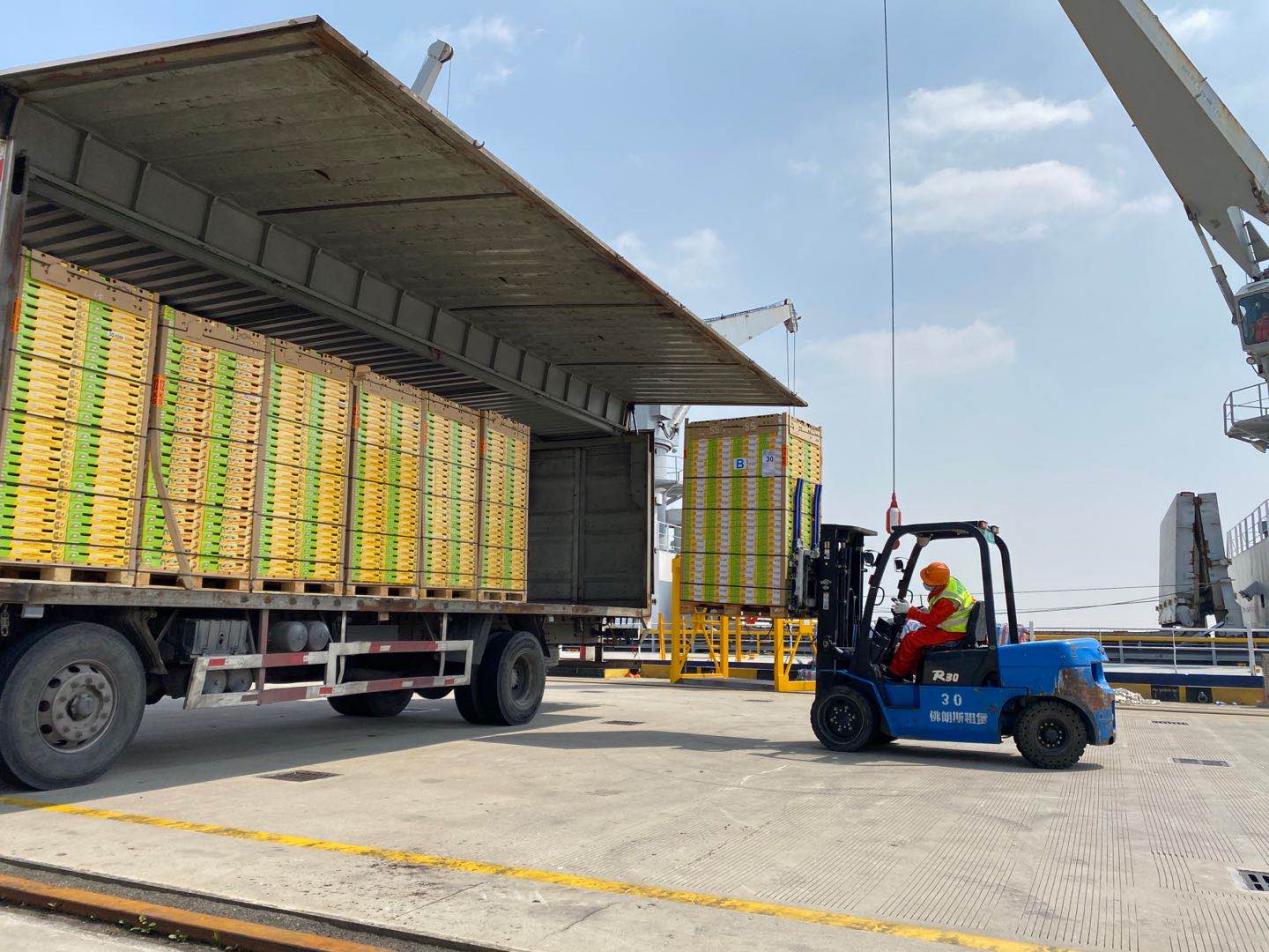 鑫榮懋?dāng)y手新西蘭佳沛公司在上海臨港南港共迎今年第一船佳沛金果靠岸