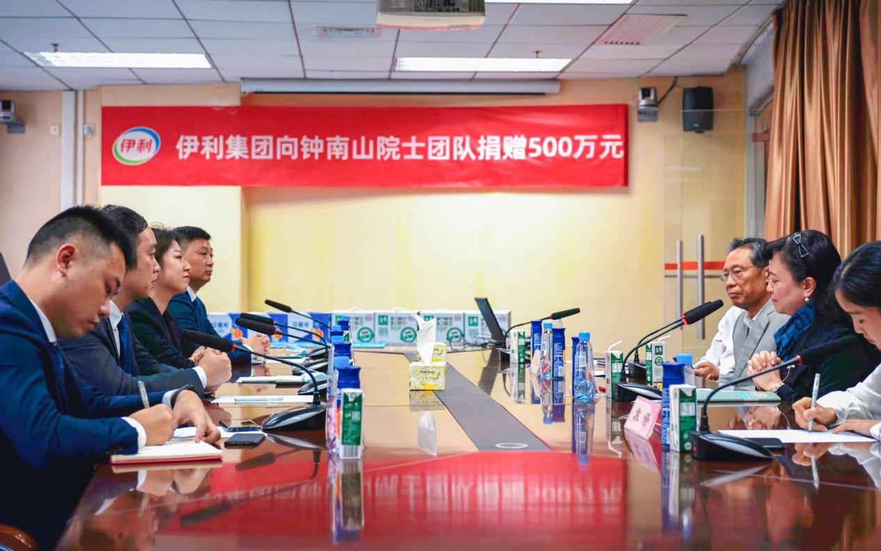 伊利集團代表向鐘南山院士(右三)團隊授予捐贈牌