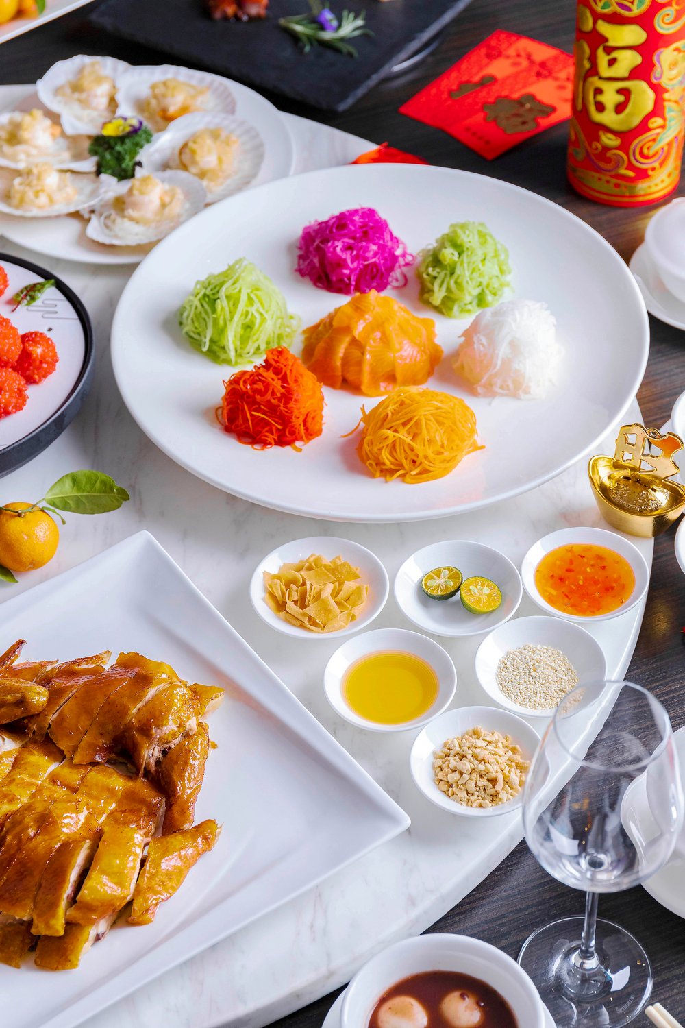 除了兩款福袋,另外還有5款年夜飯可以選擇,“迎春接福宴”、“闔家團(tuán)圓宴”、“萬(wàn)事如意宴”、“花開(kāi)富貴宴”以及“金玉滿(mǎn)堂宴”。金茂深圳JW萬(wàn)豪酒店中餐廳主廚劉師傅精心設(shè)計(jì)的賀歲菜肴除了擺盤(pán)講究之外,亦道道有講究。如:寓意“風(fēng)生水起”的三文魚(yú)生撈起,以三文魚(yú)生為主要食材,配以六款色彩繽紛的蔬菜絲,享用時(shí)眾賓客齊齊用筷子高高撈起,在開(kāi)席即可討個(gè)“越撈越旺”的好彩頭!還有上菜時(shí)冒出“仙氣”的爆汁紅顏妃子笑,寓意“吉祥如意”、寓意“牛氣沖天”的香芹腰果牛肉粒、“年年有余”的清蒸老虎斑、“五谷豐登”的總廚鮑汁炒飯等多款吉祥菜式。