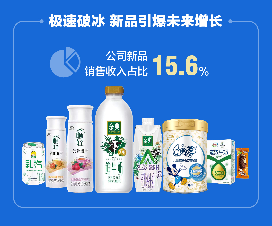 另外,伊利還推出了優(yōu)酸乳“乳汽”氣泡乳、TOORAN來襲黑奶粉、“QQ星”兒童成長配方羊奶粉等健康營養(yǎng)新品,這些能夠滿足消費(fèi)者健康和品質(zhì)生活所需的產(chǎn)品,是伊利對消費(fèi)者信賴的真誠回饋。伊利中報(bào)顯示,公司新品銷售收入占比15.6 %,已經(jīng)成為公司業(yè)績增長的新生力量。
