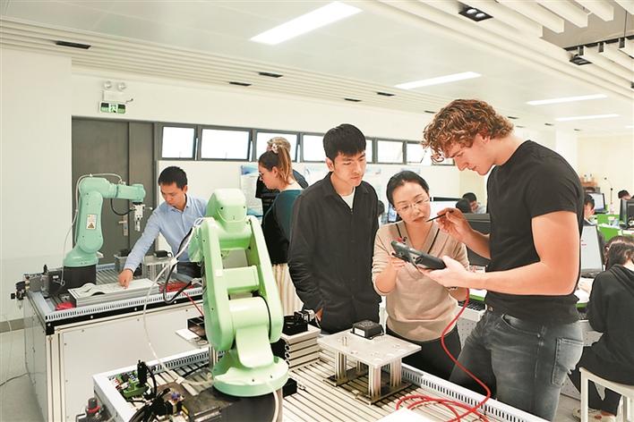 深圳商報(bào)2020年1月20日訊 阿爾卑斯山下、伊爾勒河畔,德國(guó)肯普滕當(dāng)?shù)氐淖詣?dòng)化生產(chǎn)車(chē)間,夢(mèng)想成為一名硬件工程師的張恩榮正細(xì)致觀察著生產(chǎn)流水線;而同一時(shí)刻的中國(guó),深圳信息職業(yè)技術(shù)學(xué)院(以下簡(jiǎn)稱:信息學(xué)院)西旺山下、一泓泉邊,一場(chǎng)名為“春芽草地音樂(lè)節(jié)”的戶外活動(dòng)正火熱開(kāi)場(chǎng),剛結(jié)束機(jī)電一體化實(shí)訓(xùn)課程趕過(guò)來(lái)的菲利拉起同行伙伴,興致頗高地投身到這場(chǎng)音樂(lè)節(jié)中……從1月6日起,信息學(xué)院與德國(guó)肯普滕國(guó)立第一職業(yè)學(xué)校之間為期兩周的實(shí)訓(xùn)與文化交流活動(dòng)開(kāi)啟了帷幕,張恩榮和菲利都是這項(xiàng)活動(dòng)的獲益者。
