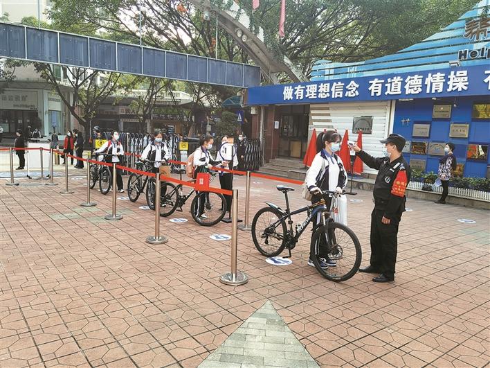龍城初級(jí)中學(xué)學(xué)生騎自行車(chē)返校進(jìn)校門(mén)走專門(mén)的通道。晶報(bào)記者陳利城/攝
