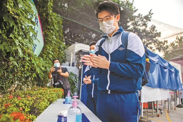 深圳實(shí)驗(yàn)學(xué)校初中部初三學(xué)生進(jìn)校門(mén)后自覺(jué)消毒洗手。晶報(bào)記者賴?yán)?攝