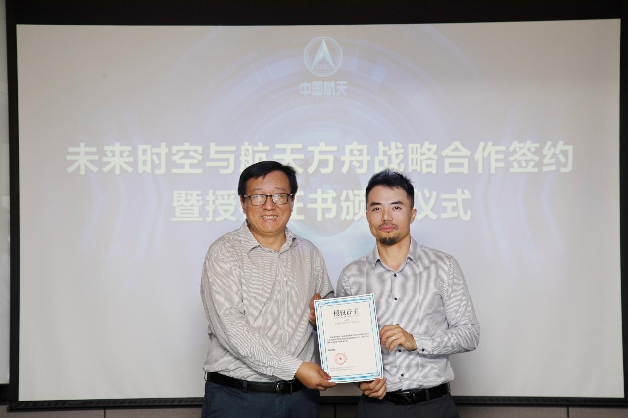 見(jiàn)圳客戶(hù)端·深圳新聞網(wǎng)2021年5月31日訊 (記者 陳彬)為深入推進(jìn)航天科技文化技術(shù)在社會(huì)生活、人民健康、科普教育、素質(zhì)教育和文化產(chǎn)業(yè)等領(lǐng)域的成果轉(zhuǎn)化和廣泛應(yīng)用,在中國(guó)航天系統(tǒng)科學(xué)與工程研究院有關(guān)領(lǐng)導(dǎo)的關(guān)心幫助下,未來(lái)時(shí)空(深圳)文化產(chǎn)業(yè)有限公司和北京航天方舟空間技術(shù)有限公司就航天文創(chuàng)產(chǎn)品開(kāi)發(fā)、航天康養(yǎng)項(xiàng)目建設(shè)、航天科普教育及商業(yè)化航天器應(yīng)用等方面達(dá)成了全面合作,于5月28日上午在北京簽署戰(zhàn)略合作協(xié)議并頒發(fā)授權(quán)證書(shū)。