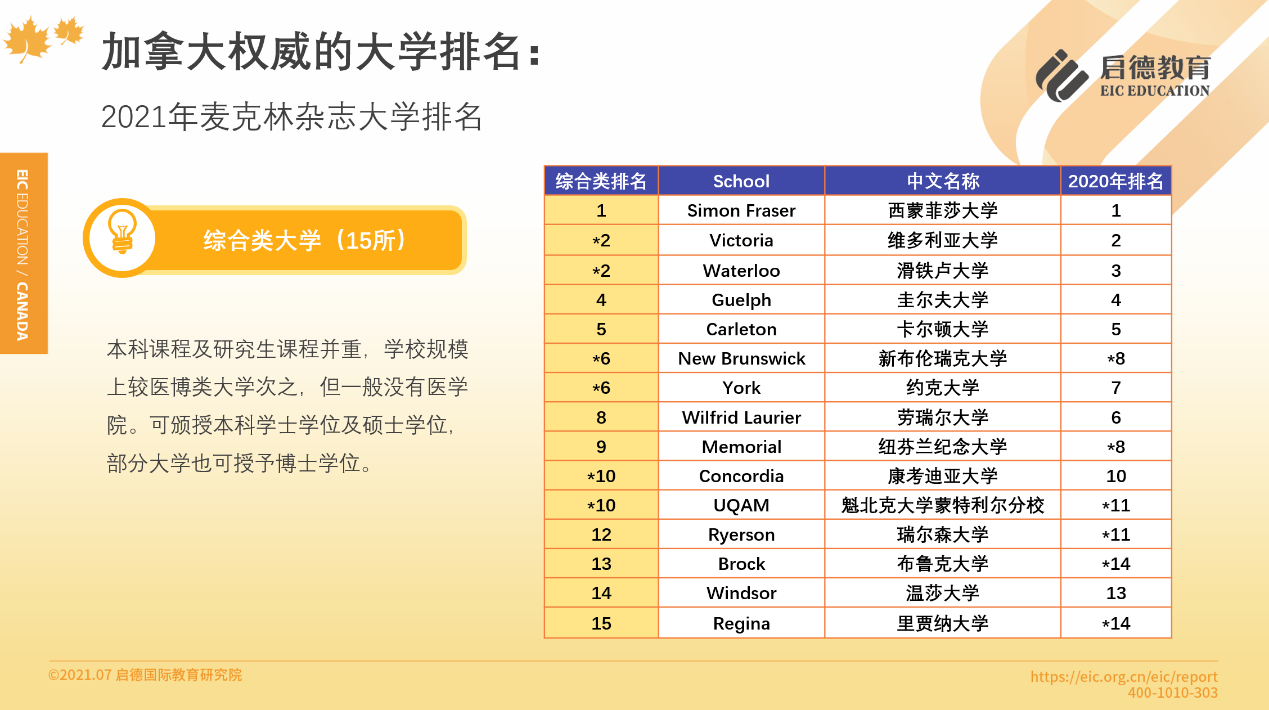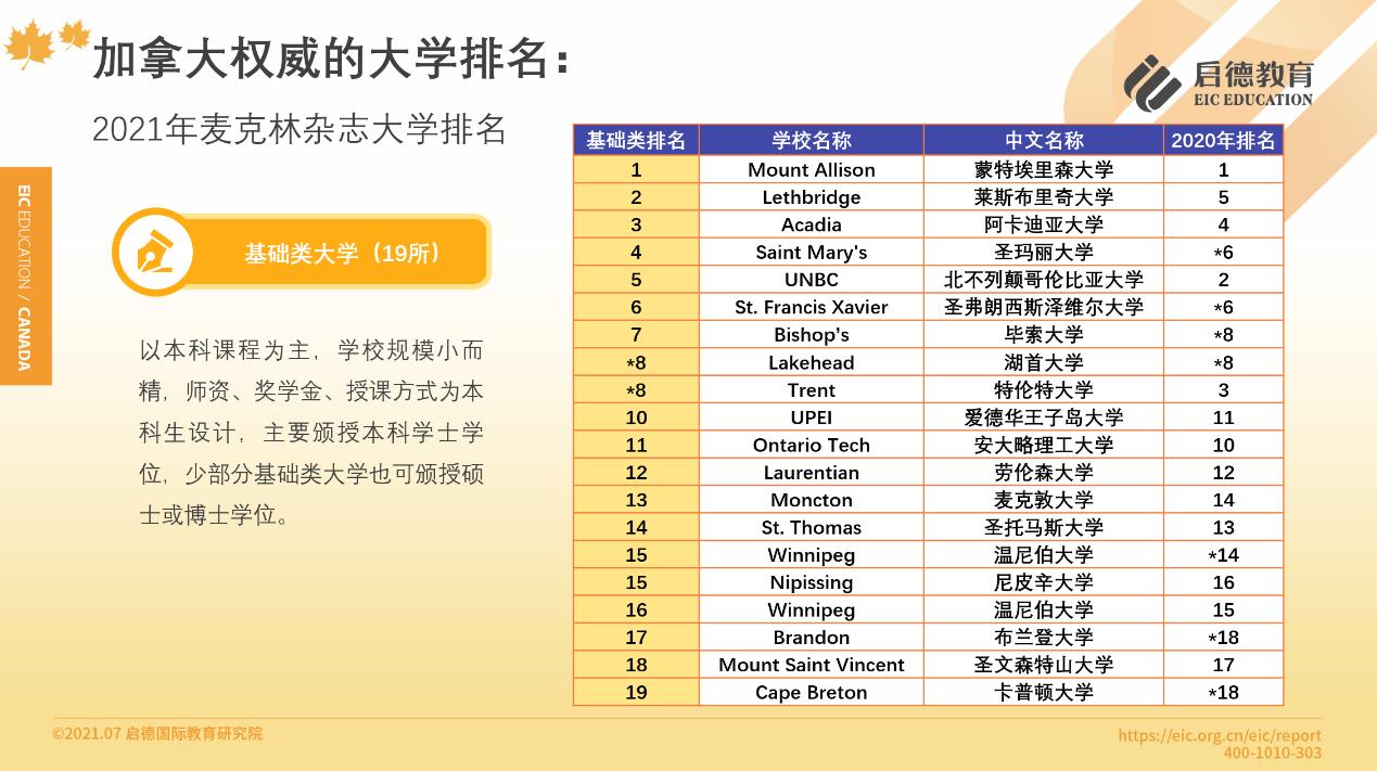 加拿大高校以公立為主,各具特色與優(yōu)勢,教育質(zhì)量在官方評價(jià)體系中并沒有顯著區(qū)別,因此,啟德教育建議,在選擇院校時(shí),除了參考麥克林雜志排名,還應(yīng)該通過院校官網(wǎng)或者留學(xué)顧問,更全面地了解加拿大高校的實(shí)力。麥克林排名根據(jù)加拿大大學(xué)的類型,分為醫(yī)博類、綜合類、基礎(chǔ)類三個(gè)排名,值得一提的是,連續(xù)21年位于基礎(chǔ)類大學(xué)排名榜首的蒙特艾莉森大學(xué),是加拿大本科畢業(yè)生中獲得羅德獎(jiǎng)學(xué)金人數(shù)最多的學(xué)校,羅德獎(jiǎng)學(xué)金又被稱為“全球本科生諾貝爾獎(jiǎng)”。此外,基礎(chǔ)類排名第19的卡普頓大學(xué),在最近一期的Analytics Insight雜志中,與美國麻省理工學(xué)院、英國華威大學(xué)等一同入選了2021年10家最著名的分析和數(shù)據(jù)科學(xué)機(jī)構(gòu)。