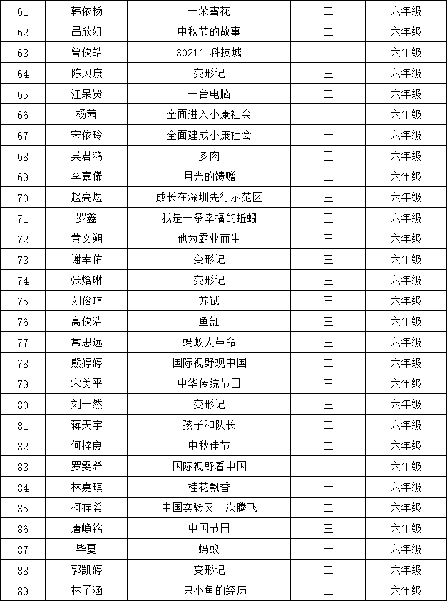 自2021年1月,活動(dòng)征稿啟動(dòng)以來(lái),獲得了深圳市廣大中小學(xué)生、教師、文學(xué)愛(ài)好者的熱烈響應(yīng)積極參與,吸引了深圳百余所學(xué)校的上萬(wàn)人關(guān)注報(bào)名。現(xiàn)公布龍華區(qū)丹堤實(shí)驗(yàn)學(xué)校晉級(jí)復(fù)賽名單如下: