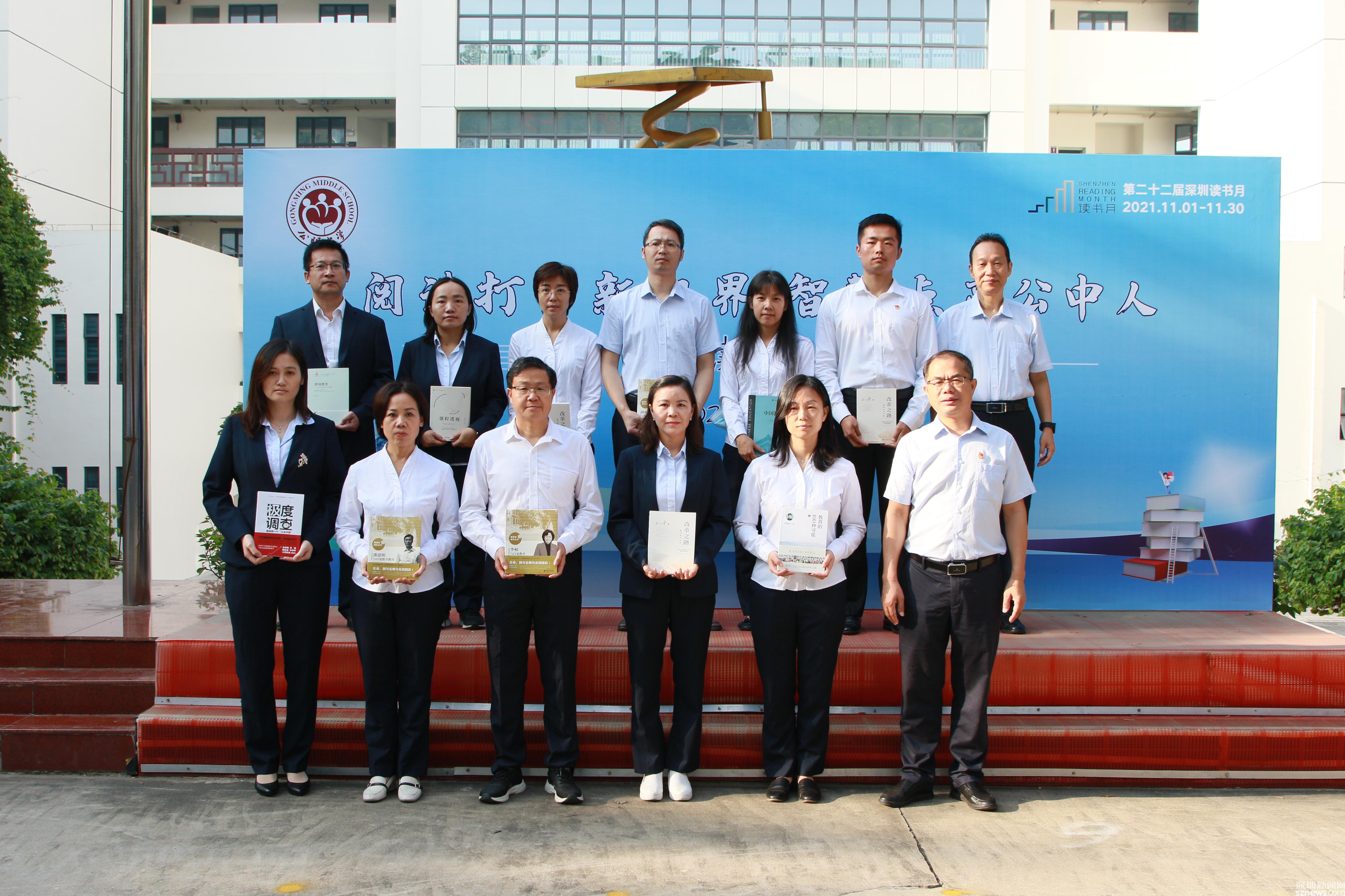 啟動(dòng)儀式上,初二(15)班全體學(xué)生帶來的朗誦《我愿意 奮斗終生》,催人覺醒;深圳市閱讀推廣人范世華攜公明中學(xué)各年級閱讀之星代表——初三(8)李詩晨、初二(8)宛錚、初一(2)班胡立麒,共同向全校師生發(fā)出讀書、愛書的倡議;華建明校長、梁吉清副校長向?qū)W校各學(xué)科科組長贈(zèng)書,希望科組長帶動(dòng)備課組一起讀好書,研究書,用好書,通過博而精的閱讀提升人文素養(yǎng),建設(shè)學(xué)習(xí)型教師共同體,進(jìn)而更好在學(xué)生心中種下讀書的種子。